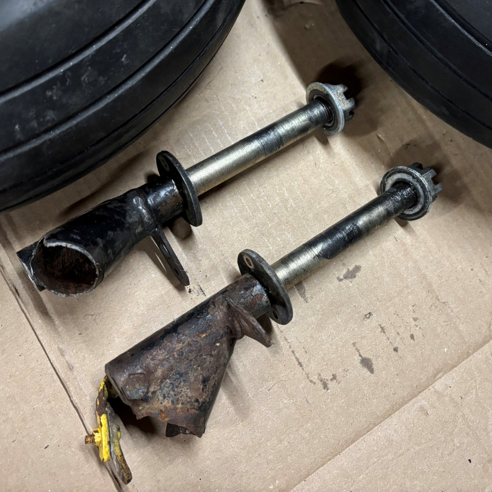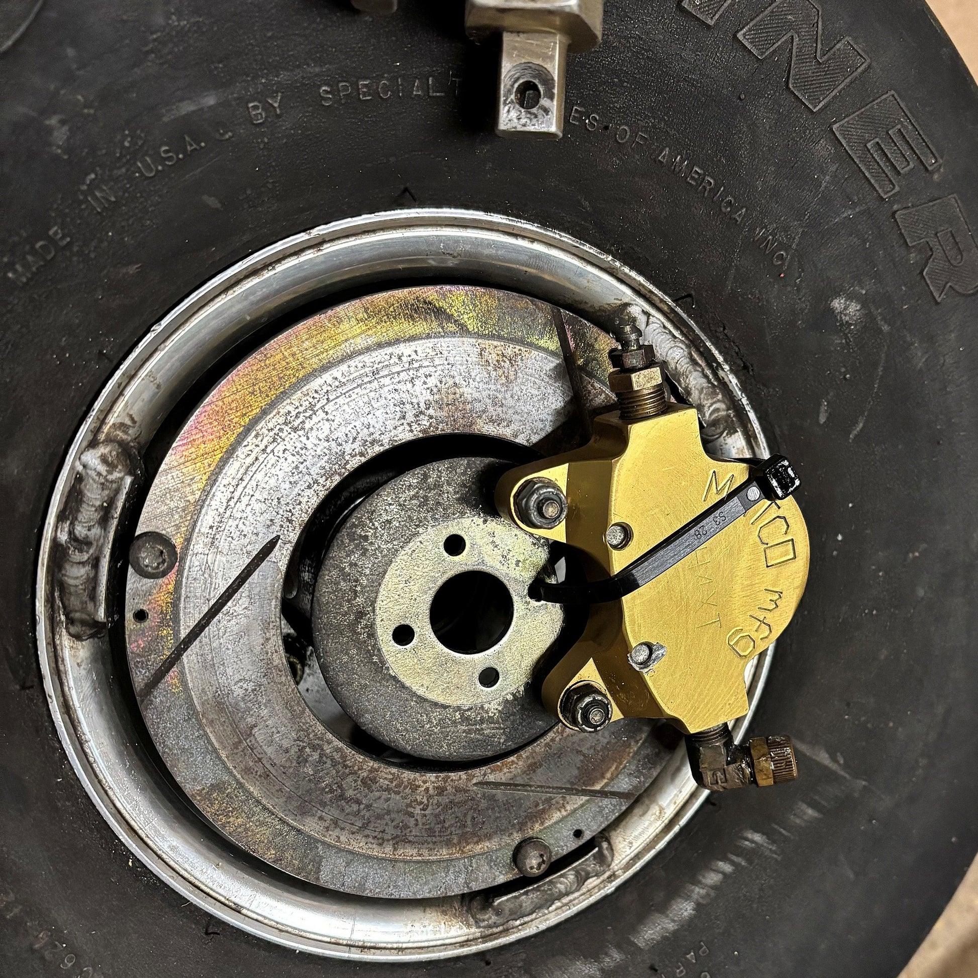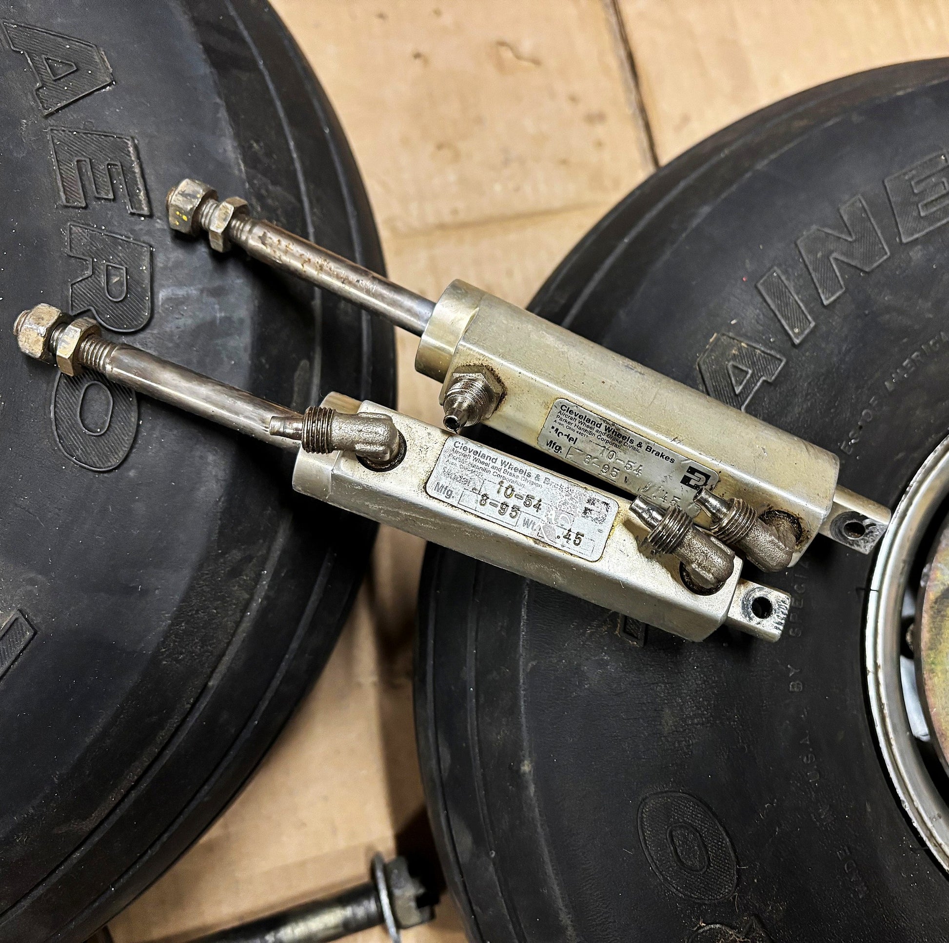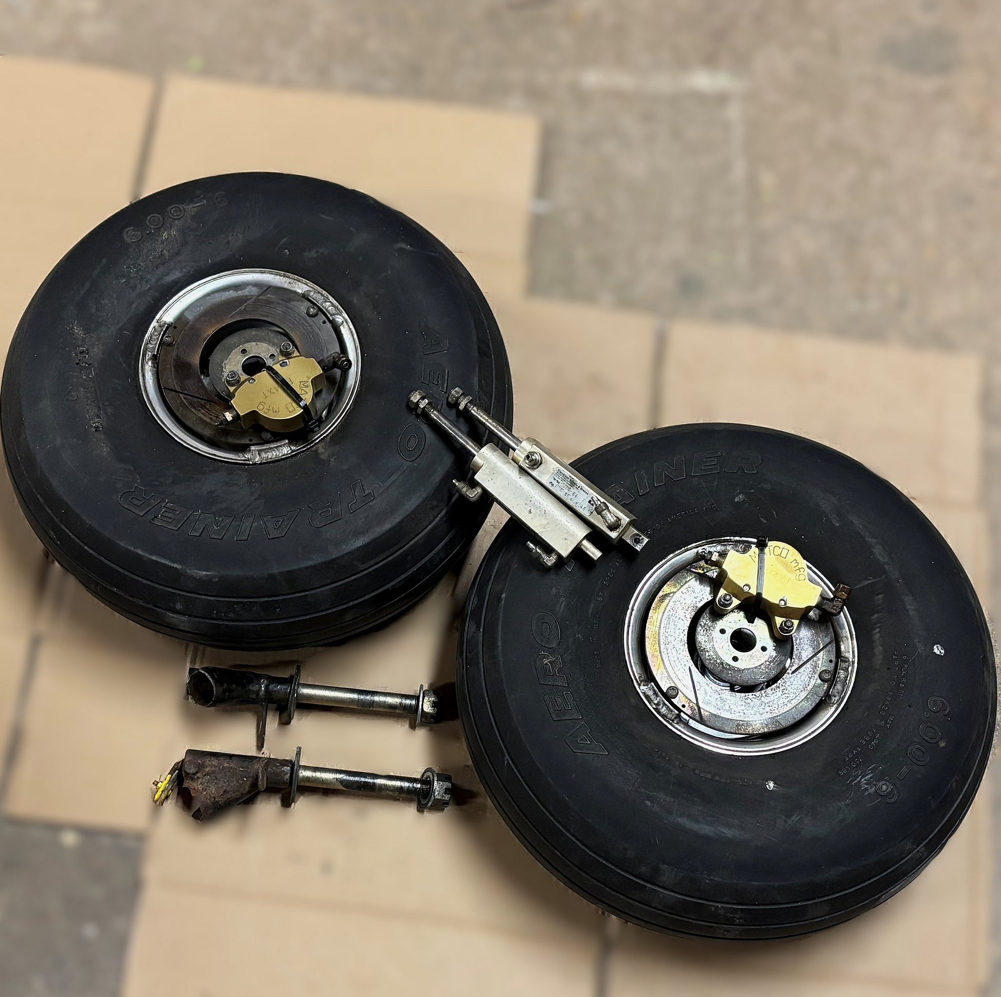 C/W: Matco MH6B-S wheels & PH4XT calipers, Cleveland 10-54 Brake master cylinders, used 6.00-6 tyres that appear serviceable, but carry no warranty and 2 free issue 5/8" stub axles that may or may not be serviceable. Removed from a Rans S-7 (taildragger).